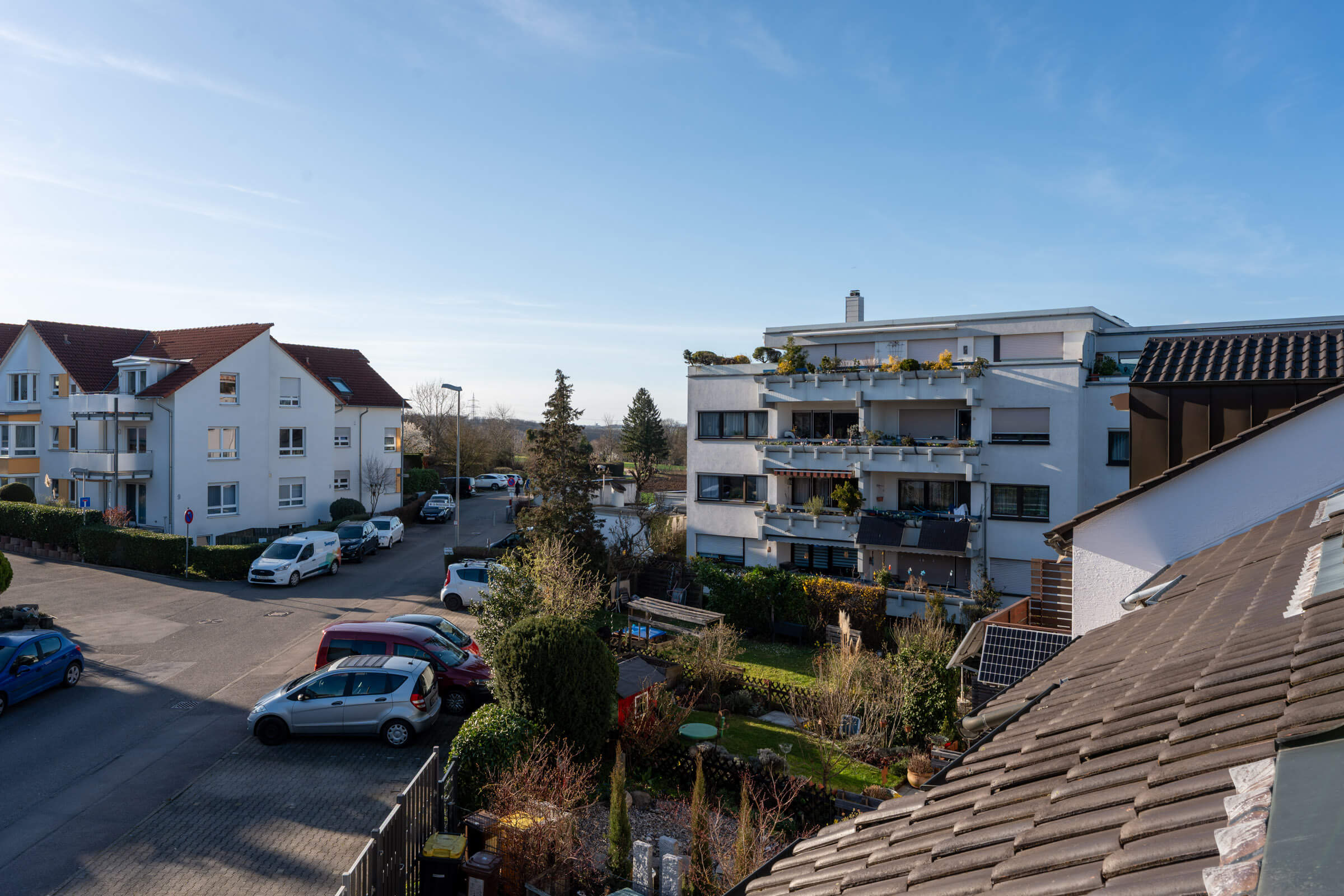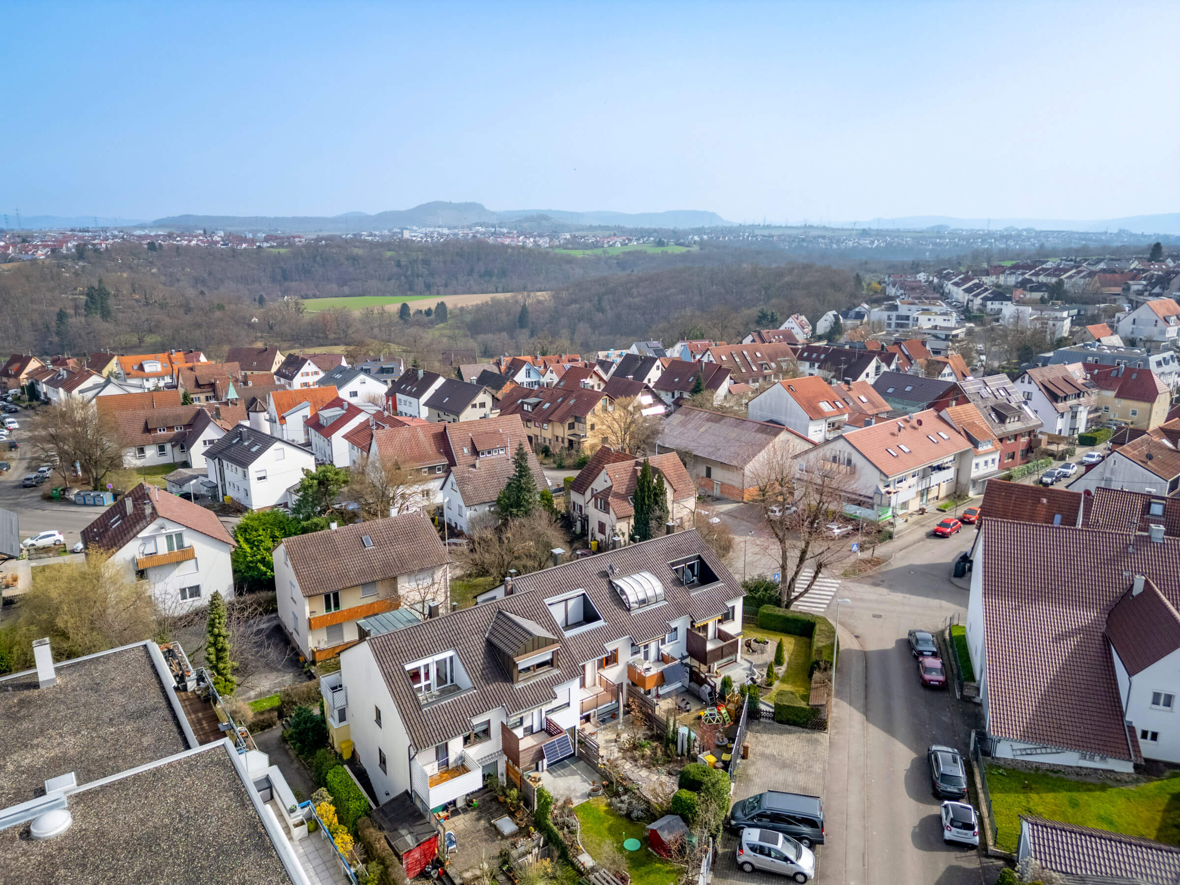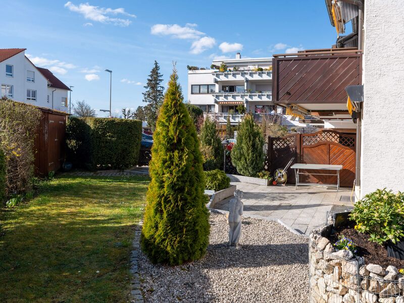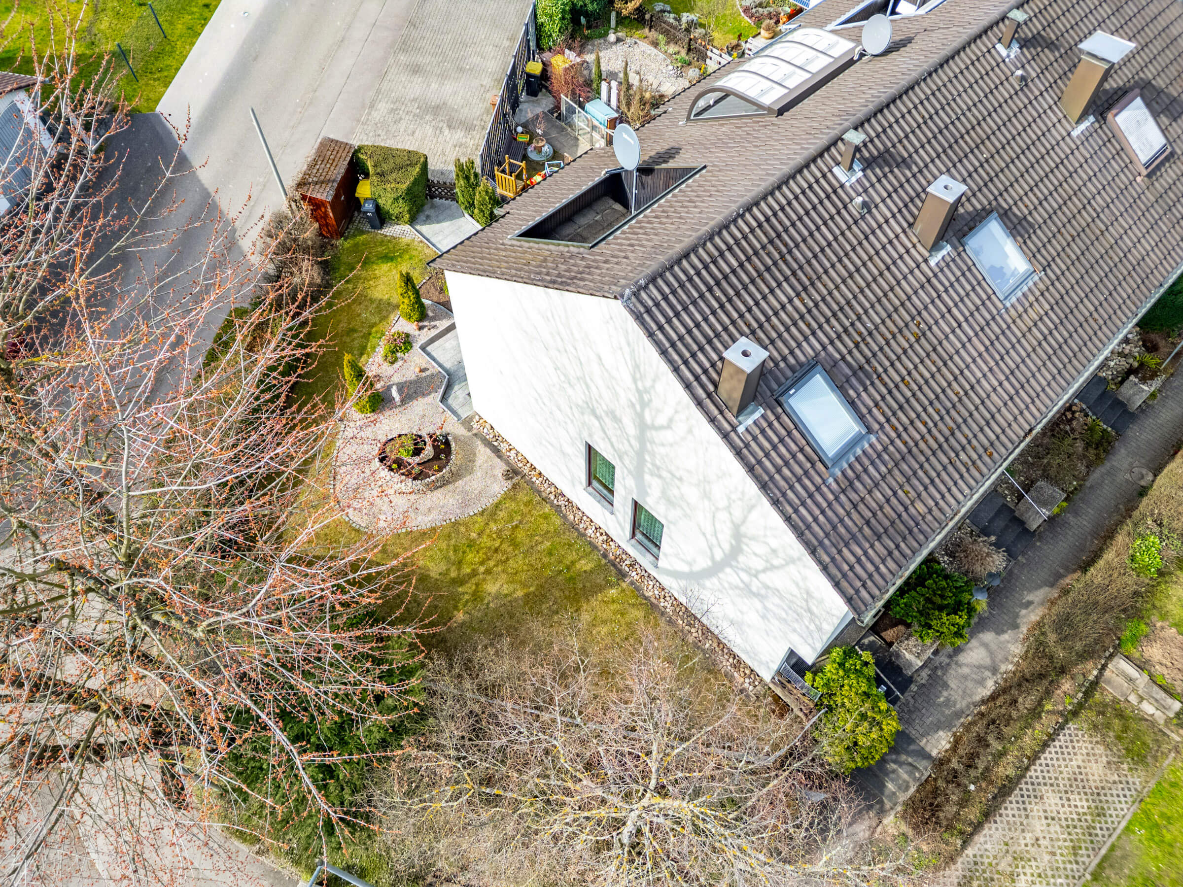 Der Garten auf dem Eckgrundstück bietet Platz für Kinder zum Spielen, für eigene Gartenideen oder einfach für entspannte Stunden im Freien. Balkon und Dachterrasse erweitern den Wohnraum zusätzlich nach draußen und schaffen weitere Rückzugsorte für den Alltag und die warmen Monate des Jahres.