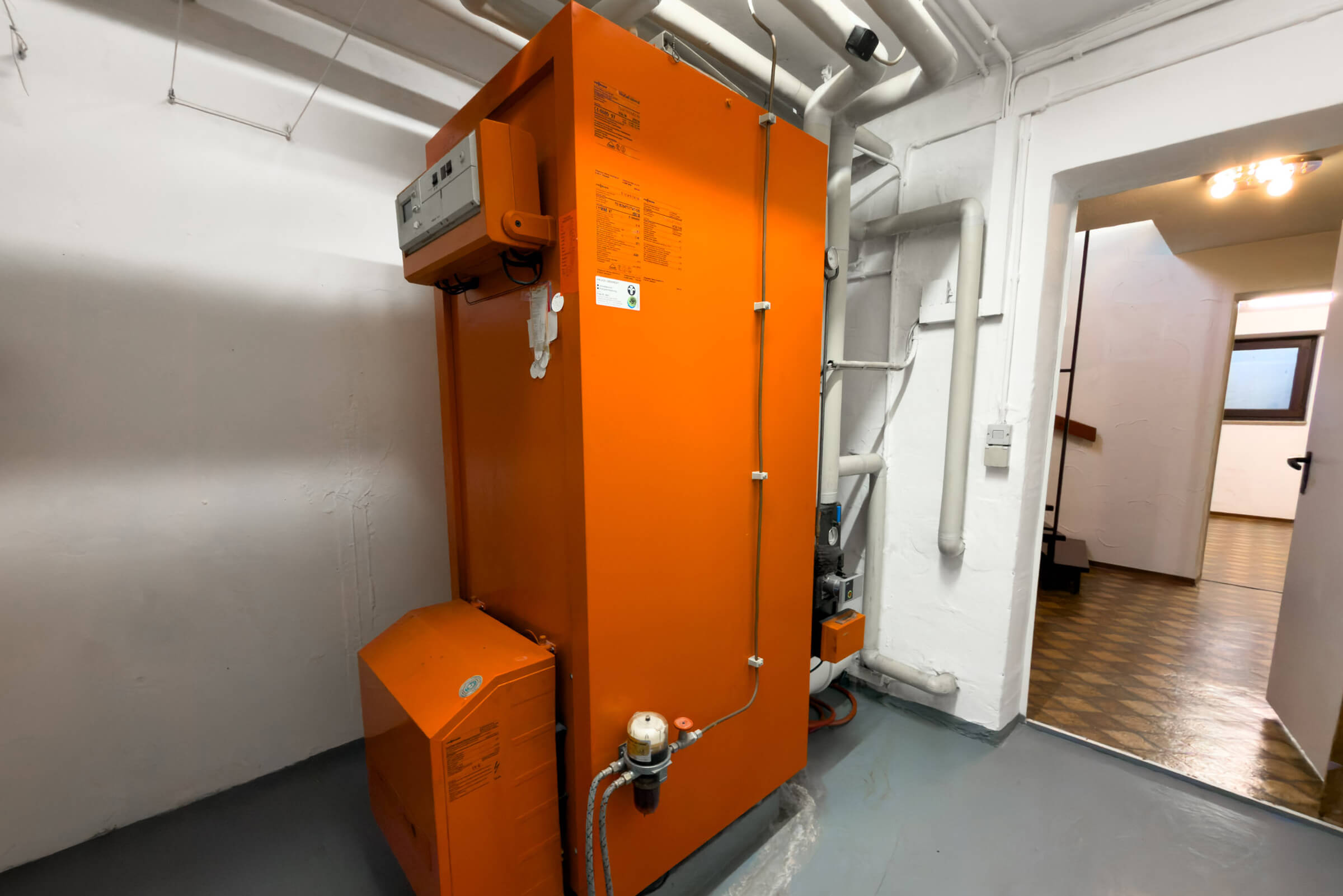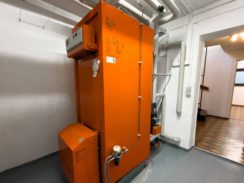 Beheizt wird das Haus über eine Öl-Zentralheizung aus dem Jahr 1997. Der Energieausweis weist die Energieeffizienzklasse G aus. Das Gebäude ist voll unterkellert. Im Untergeschoss befindet sich zusätzlich ein beheizter Hobbyraum mit ca. 19 m², der sich beispielsweise als Homeoffice, Fitnessraum oder Gästezimmer nutzen lässt. Zur Immobilie gehören eine Einzelgarage sowie drei Außenstellplätze.