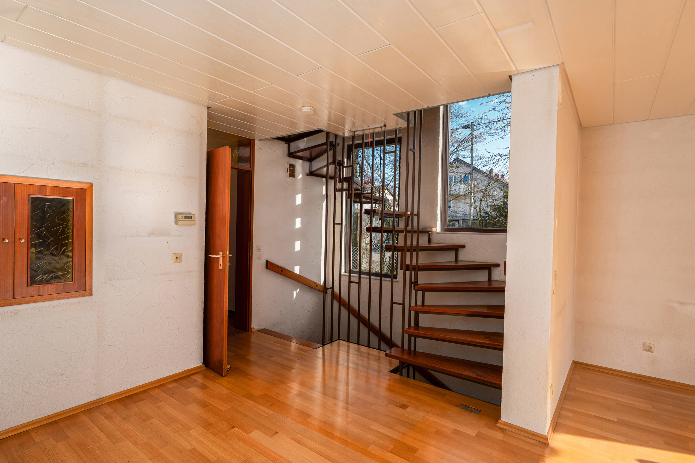 In einer ruhigen Wohnstraße gelegen, bietet das Haus rund 116 m² Wohnfläche, ein ca. 305 m² großes Eckgrundstück sowie mehrere Außenbereiche mit Terrasse, Balkon und Dachterrasse. Gleichzeitig eröffnet sich neuen Eigentümern die Möglichkeit, das Haus nach eigenen Vorstellungen weiterzuentwickeln.