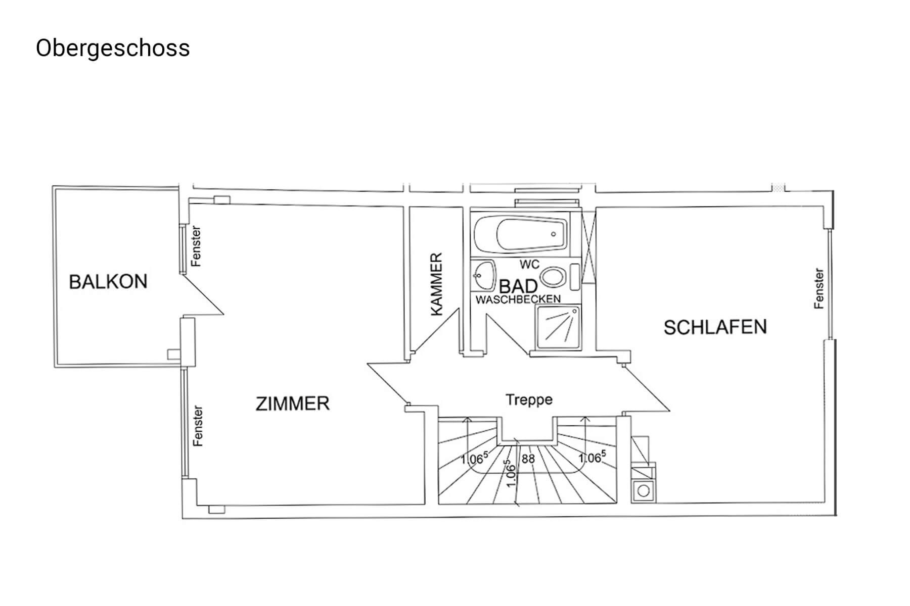 Das Haus verfügt aktuell über vier Zimmer. Ursprünglich war die Raumplanung so vorgesehen, dass auch fünf Zimmer realisiert werden können, sodass bei Bedarf zusätzlicher Wohnraum geschaffen werden kann. Die Immobilie befindet sich insgesamt in einem gepflegten Zustand mit Modernisierungspotenzial. Viele Ausstattungsmerkmale entsprechen noch dem Baujahr und bieten neuen Eigentümern die Möglichkeit, eigene Wohnideen umzusetzen.
